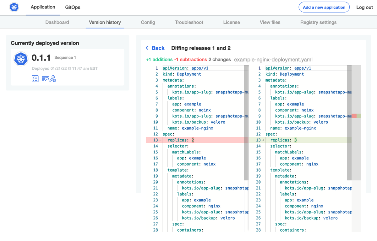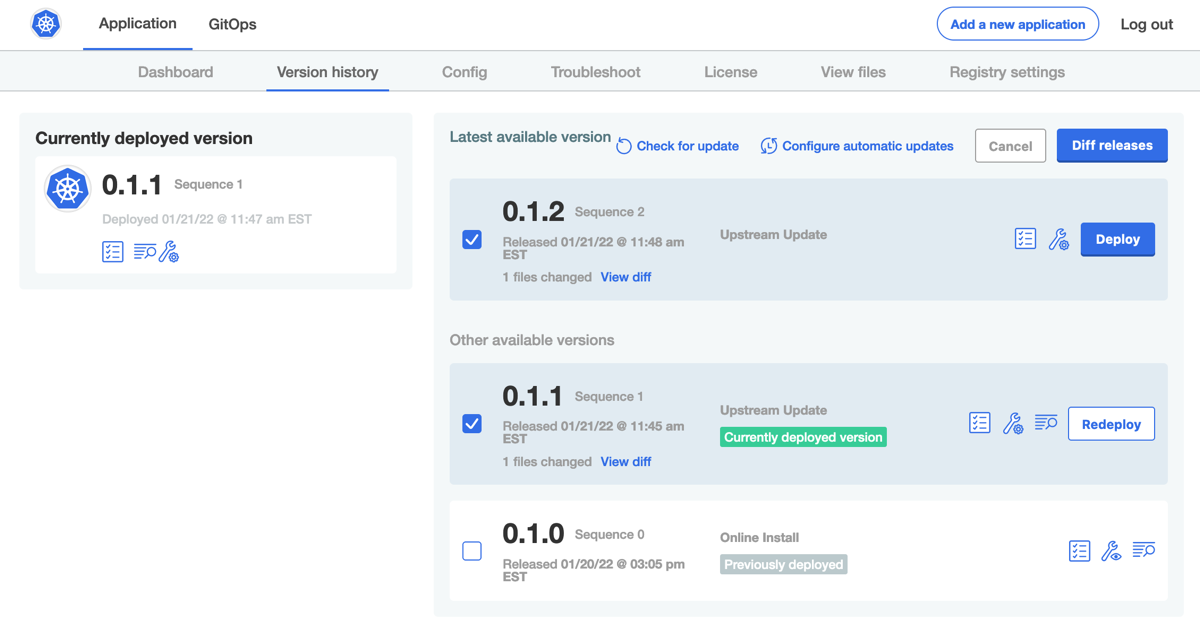 (Optional) When there are multiple versions of an application, you can compare the changes between them by clicking Diff releases in the right corner.